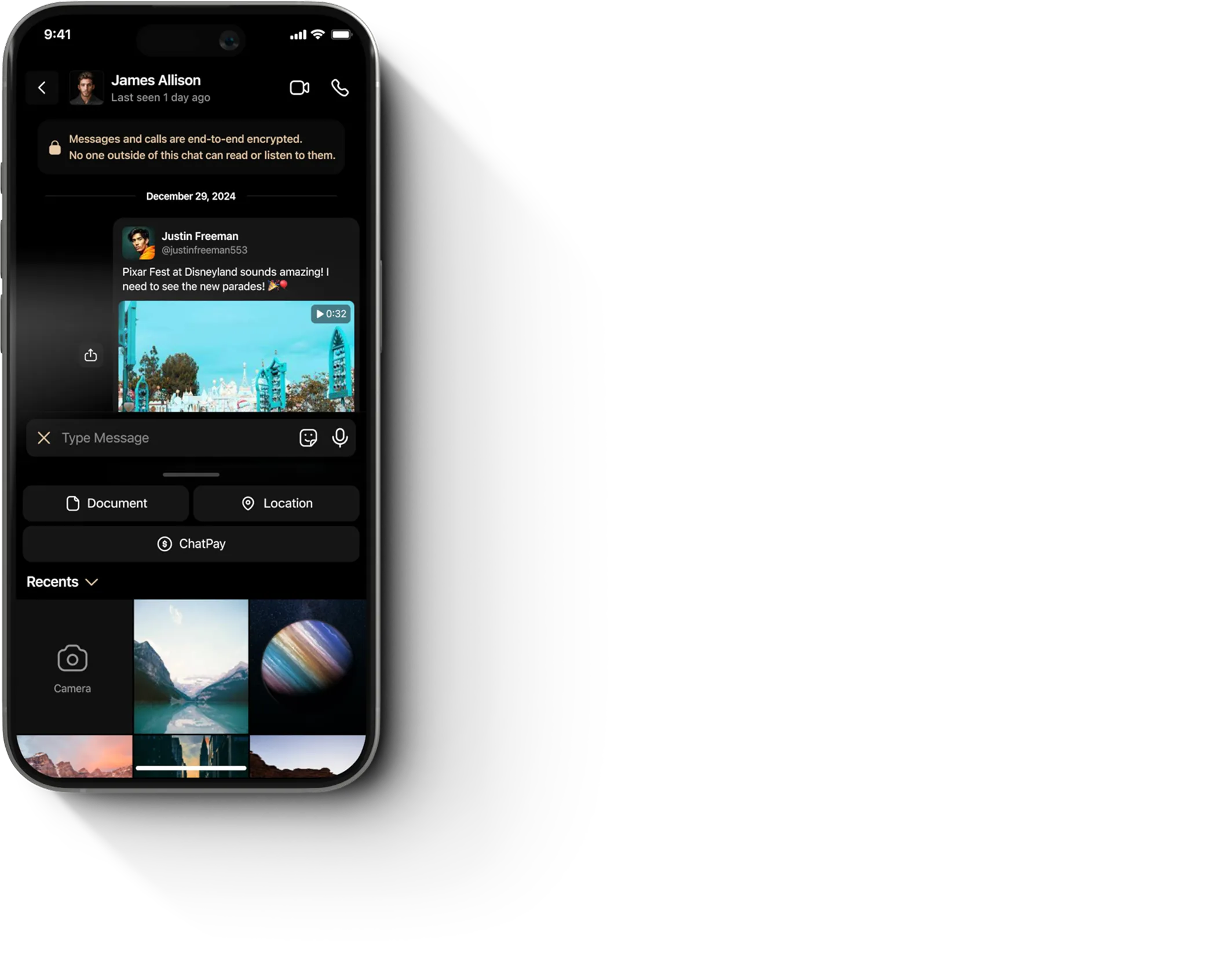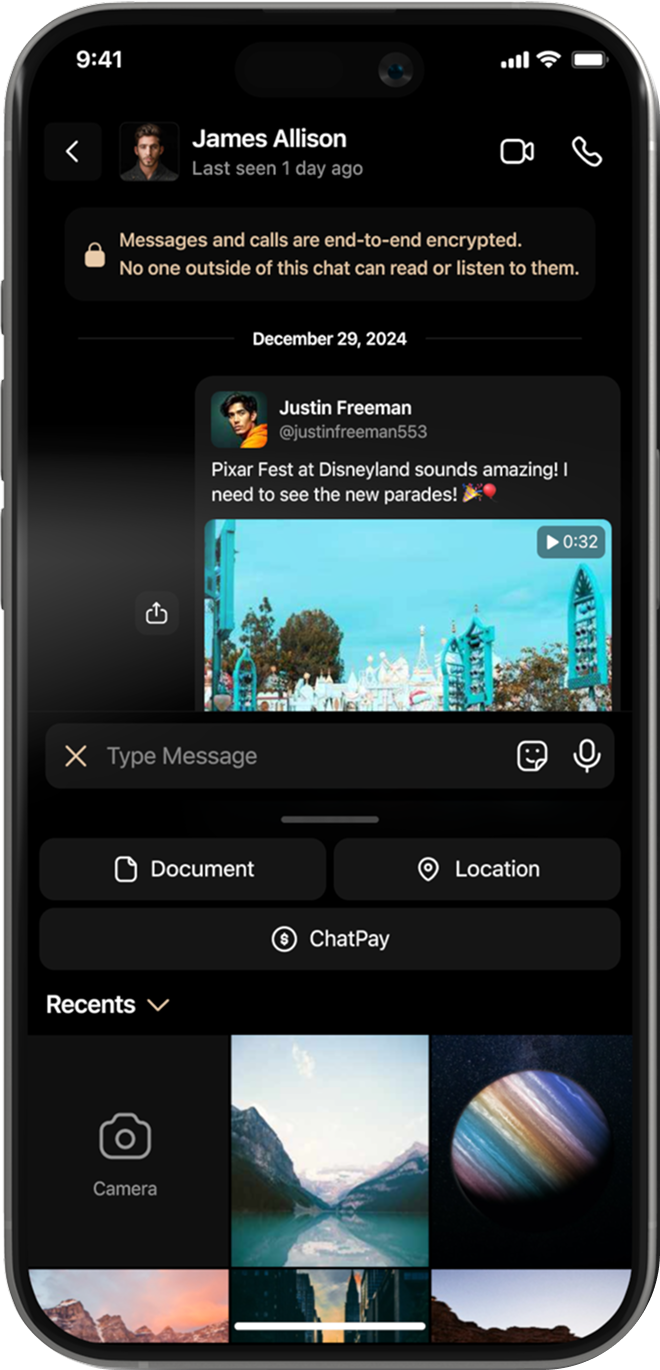 Encrypted DMs, groups, and channels meet integrated payments. No extra apps, no switching.